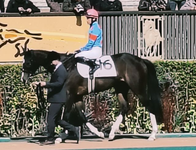 スタートはまずまずでした。大外枠だったこともあるのか道中中段よりやや後ろで進んでいきます。3コーナーあたりから徐々に上がっていきますが、なかなか前に進んでいきません。直線は大外を一所懸命上がってきますが、じりじりとしか進みません。内にささるのかジョッキーが左ムチを入れています。なんだか走り方がバラバラな印象を受けました。結果は16頭立ての9着(9番人気)でした。勝ったのが同じシルクの馬だったのはちょっと悔しかったですが、デビュー戦としてはまずまずの結果ではなかったかと思います。